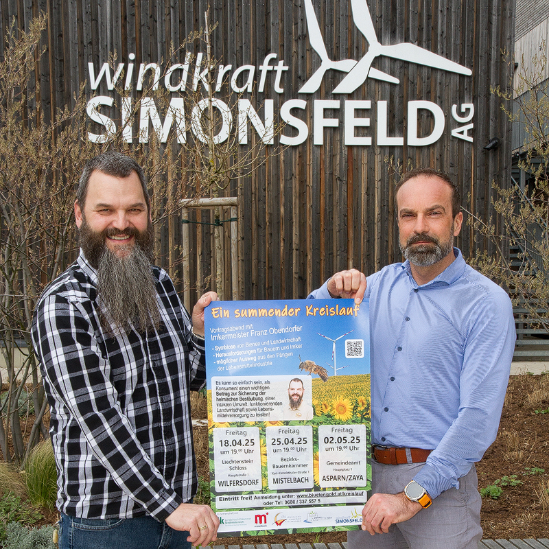 Was wäre die Welt ohne Freunde und Partner? Wir dürfen uns glücklich schätzen, schon seit vielen Jahren in der Windkraft Simonsfeld AG einen ebensolchen Wegbegleiter zu haben. Als bekennende Alternativenergie-Befürworter freuen wir uns über die Zusage von Vorstand Markus Winter, MSc, MAS, uns erneut als Sponsor bei den bevorstehenden Vortragsabenden zu unterstützen, ganz besonders!